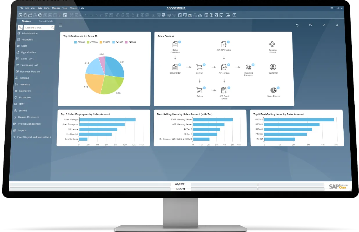 SAP Business One is a smart, feature-rich business management software for small and medium-sized enterprises. As an ERP solution, it automates vital business functions in financials, operations, and human resources and offers SMEs a single, affordable solution for managing the entire company successfully. With powerful reporting and analytics capabilties, SAP Business One helps you get the most out of your data, gives you clear visibility over the business and makes it easier to increase profits while reducing risk.